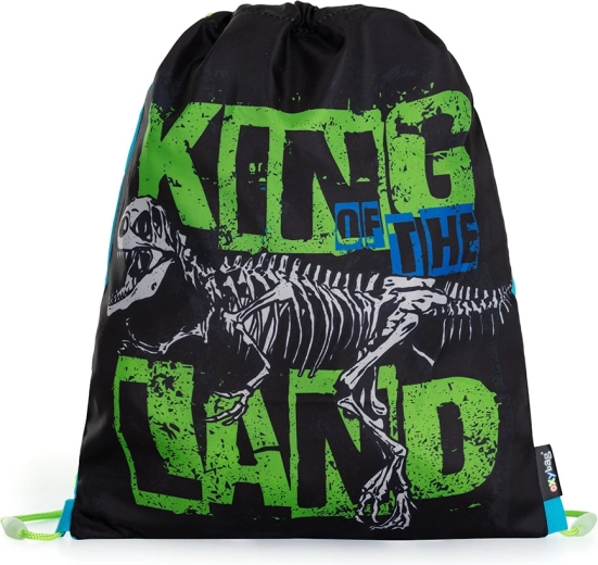 Praktyczny worek na buty i strój sportowy z motywem dinozaura, wykonany z wytrzymałego poliestru. Zaciągane sznurki umożliwiają szybkie i bezpieczne zamknięcie, można go nosić na plecach lub przymocować do plecaka szkolnego. Lekki i poręczny, idealny do szkoły i na zajęcia.