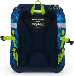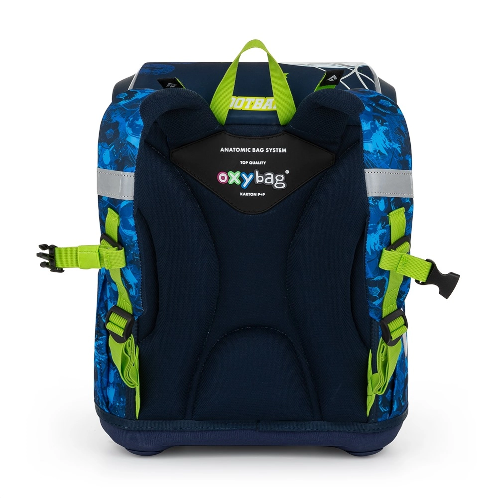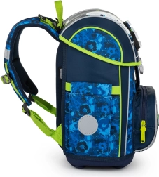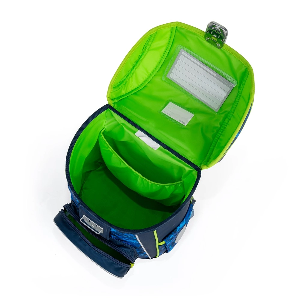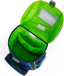 Główna komora mieści wszystkie szkolne akcesoria i utrzymuje kształt dzięki wewnętrznemu usztywnieniu. Przednia kieszeń jest idealna na drugie śniadanie i drobiazgi; bezpieczeństwo zwiększa metalowa klamra z wbudowanym elementem odblaskowym oraz odblaskowe detale dookoła. Sztywne dno chroni zawartość przed przewróceniem i rozsypaniem, a dodatkowe haczyki ułatwiają mocowanie szelek.