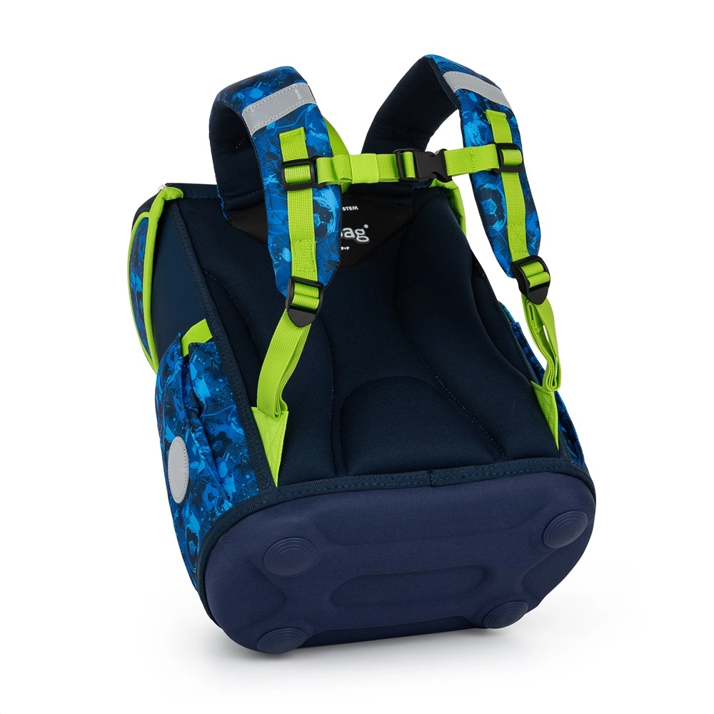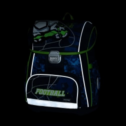 Lekki i wytrzymały plecak szkolny z motywem piłkarskim dla młodszych uczniów. Oferuje anatomicznie wyprofilowane plecy, wygodne, miękko wyściełane szelki oraz sztywne dno dla bezpiecznego przechowywania przyborów. Dzięki elementom odblaskowym dziecko jest lepiej widoczne, a pojemna komora i kieszenie zapewniają doskonałą organizację.