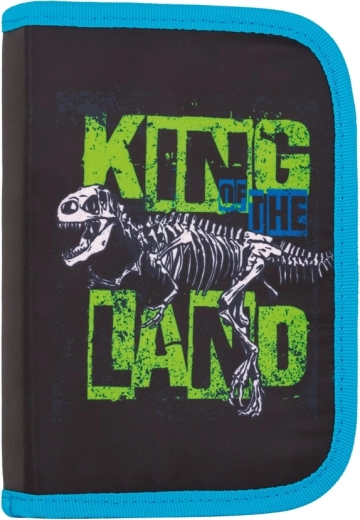 Piórnik szkolny z dinozaurami, 1 poziom, 2 skrzydełka – w pełni wyposażony