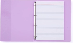 Karis A4 Pastelini fioletowy segregator na ringi zapewnia stylowy i praktyczny sposób organizowania dokumentów. Wyposażony jest w solidny 4‑ringowy mechanizm i dostarczany z wkładem 100 liniowanych kartek.