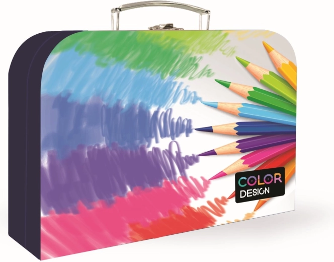 Praktyczna laminowana teczka z rączką z motywem kredek do szkoły i na czas wolny, idealna na artykuły plastyczne i zeszyty w formacie A4. Wytrzymała laminowana powierzchnia, bezpieczne metalowe zapięcie oraz mocne metalowe nity zapewniają długą żywotność. Kompaktowy wymiar 340 × 230 × 100 mm i wygodna masa 0,495 kg ułatwiają przenoszenie.