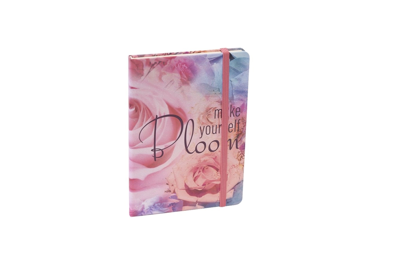 Stylowy notes A6 z twardą okładką (2 mm), 96 kartkami w linie oraz praktyczną gumką do bezpiecznego zamykania. Nowoczesny mix motywów BLOOM dostarcza inspiracji do notatek, planowania i journalingu.