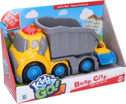 Z tym zestawem pojazdów budowlanych Kiddy dzieci spędzą godziny na kreatywnej zabawie. Wywrotka z naczepą ma ruchome drzwiczki i efekty aktywowane przyciskiem na dachu kabiny, natomiast buldożer jest wyposażony w ruchomą łyżkę do załadunku i wyładunku. Dzięki swobodnym kołom pojazdy łatwo prowadzą nawet najmłodsi kierowcy.