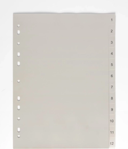 Ten rozdzielacz oferuje efektywny sposób na organizowanie i oddzielanie dokumentów w biurze lub domu. Zawiera rejestr 1-12, który umożliwia szybkie i łatwe znalezienie potrzebnych dokumentów.