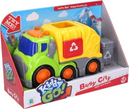 Ta szczegółowo wykonana śmieciarka jest idealna dla małych miłośników techniki i usług miejskich. Dzięki efektom świetlnym i dźwiękowym tworzy autentyczną atmosferę i wspiera wyobraźnię podczas zabawy. Otwierany kosz i ruchome drzwiczki umożliwiają łatwe przenoszenie „odpadów” i realistyczne scenariusze wywozu.