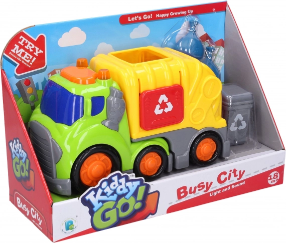 Odkryj zabawę ze śmieciarką Kiddy o długości 19,5 cm, która oferuje efekty świetlne i dźwiękowe, ruchome drzwiczki oraz otwierany kosz na śmieci. Wystarczy nacisnąć przycisk na dachu kabiny i zabawa się zaczyna! W zestawie znajdują się także kółka na wolnym biegu dla płynnego poruszania oraz kompletne akcesoria do realistycznej zabawy.