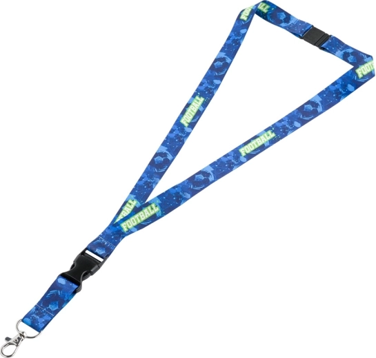 Praktyczna dziecięca smycz na szyję z wesołym, piłkarskim motywem ucieszy każdego małego ucznia. Oferuje karabińczyk na klucze lub przepustki oraz odpinaną klamrę dla szybkiego i bezpiecznego użytkowania. Lekka i wygodna do codziennego noszenia.