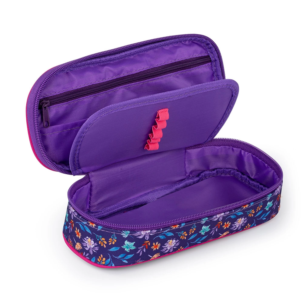 Wybierz praktyczny i stylowy piórnik do przechowywania wszystkich niezbędnych szkolnych akcesoriów. Ten piórnik wyposażono w trwałe zamki oraz klapkę z uchwytami, co umożliwia efektywną organizację: