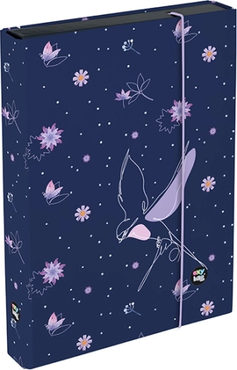 To pudełko na zeszyty w formacie A5 jest idealne do codziennego noszenia przyborów szkolnych. Ma solidną laminowaną powierzchnię i zapięcie na gumkę, które zapewnia, że zawartość jest mocno zabezpieczona. Szerokość grzbietu wynosi 3,5 cm, co zapewnia wystarczająco dużo miejsca na dużą ilość zeszytów i dokumentów.