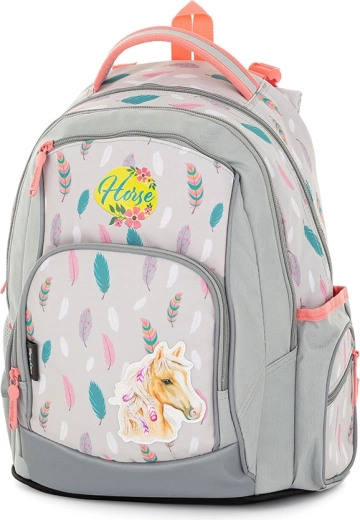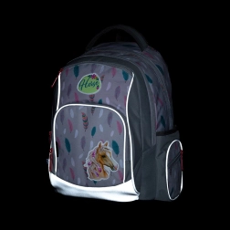 Lekki i ergonomiczny plecak szkolny Oxy Go z motywem konia jest idealny dla dzieci od wzrostu 125 cm (klasy 1–3). Oferuje anatomicznie wyprofilowane i oddychające plecy, regulowane szelki dla wygodnego noszenia, dużo kieszeni i przegródek na podręczniki i drobiazgi oraz solidne dno chroniące przed zabrudzeniem i przeciekaniem. Dla większego bezpieczeństwa nie brakuje elementów odblaskowych.