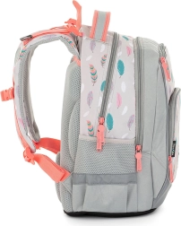 Praktyczne solidne dno chroni przed zabrudzeniem i niechcianym przeciekaniem zawartości. Plecak oferuje dużą liczbę kieszeni, dzięki czemu klucze i drobiazgi zawsze będą pod ręką. Elementy odblaskowe zwiększają widoczność dzieci w drodze do szkoły i z powrotem.