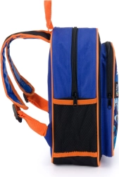 Ten wesoły przedszkolny plecak w niebiesko‑pomarańczowej kolorystyce został zaprojektowany tak, aby zapewnić dzieciom wystarczająco dużo miejsca na codzienne niezbędniki. Główna komora pomieści ulubione zabawki lub ubrania, przednia kieszeń jest idealna na przekąskę i drobiazgi. Boczne siateczki bezpiecznie utrzymają butelkę z napojem.
