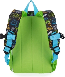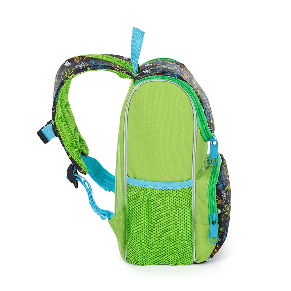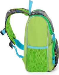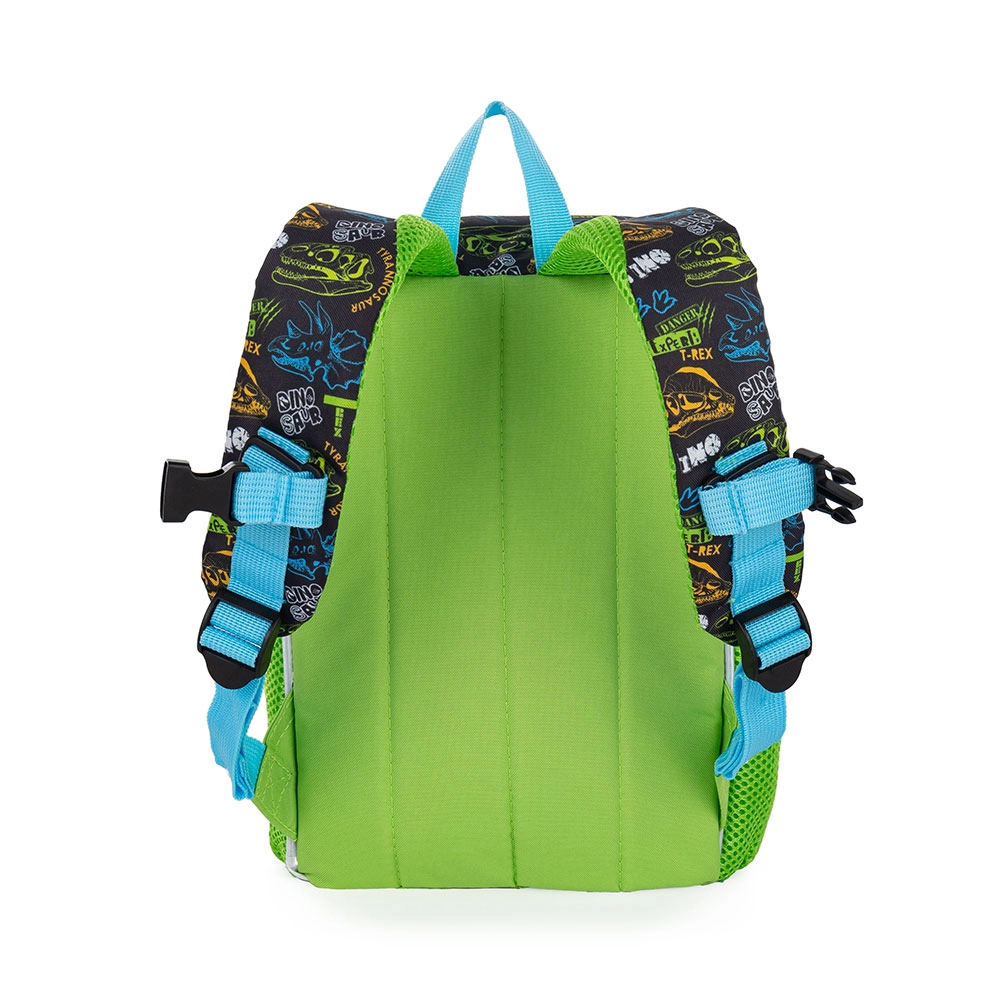 Lekki i wygodny dziecięcy plecak z motywem dinozaurów do codziennego użytku. Idealny dla dzieci od 3 do 6 lat, oferuje pojemną główną kieszeń, przednią kieszeń na przekąskę oraz boczną kieszeń na butelkę. Dla bezpieczeństwa nie brakuje elementów odblaskowych, a dla wygodnego noszenia pasek piersiowy.