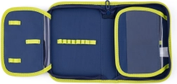 Praktyczny jednopiętrowy piórnik szkolny z 2 klapkami do przejrzystego przechowywania przyborów. Oferuje 25 gumowych uchwytów oraz przezroczyste folie na plan lekcji. Jest lekki (0,2 kg) i kompaktowy (205 × 140 × 35 mm) w atrakcyjnym motywie kosmos.