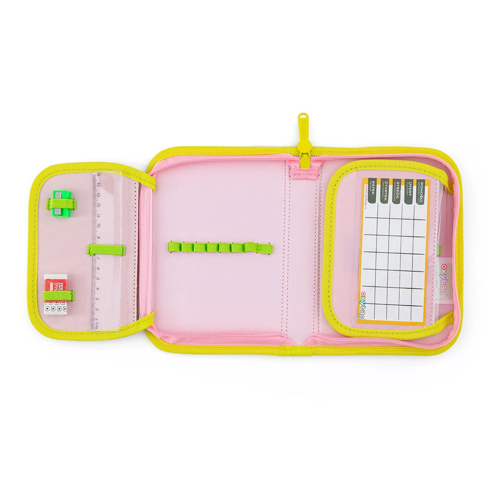 Praktyczny szkolny piórnik z lubianym motywem konia sprawi, że wszystko, co potrzebne, będzie w jednym miejscu. Jednopoziomowa konstrukcja z dwoma skrzydełkami zapewnia przejrzyste ułożenie i łatwy dostęp do ołówków, piór i gumek.