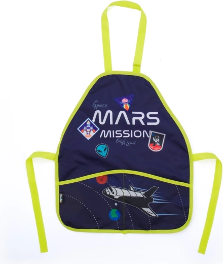 Lekki i trwały fartuch Space to świetny pomocnik na szkolne zajęcia plastyczne i domowe tworzenie. Dzięki regulowanemu zapięciu wokół szyi oraz wiązaniu w pasie wygodnie leży i niezawodnie chroni ubranie przed farbami, klejem i innymi zabrudzeniami. Materiał z 100% poliestru łatwo się czyści i szybko schnie.