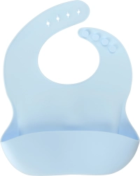 Miękki silikonowy śliniak z regulowanym zapięciem i głęboką kieszonką niezawodnie wyłapuje okruszki i płyny, chroniąc ubranie przy każdym posiłku.