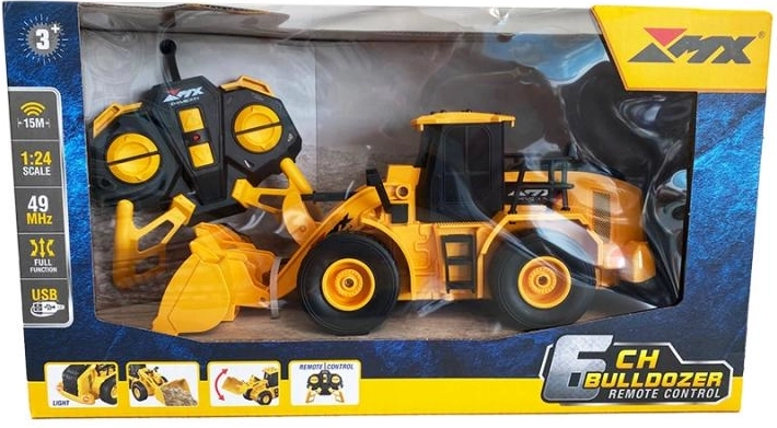 Zdalnie sterowany buldożer RC z efektami świetlnymi. Jeździ we wszystkich kierunkach.