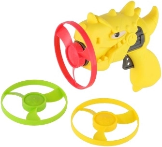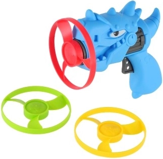 Podaruj dzieciom dynamiczną zabawę z wyrzutniowym pistoletem w kształcie dinozaura i trzema kolorowymi wirnikami. Zabawka jest lekka, wytrzymała i łatwa w obsłudze – włóż wirnik do lufy, naciśnij starter i obserwuj, jak szybko wznosi się w górę. Dzięki wyrazistym kolorom wirniki są dobrze widoczne w locie.