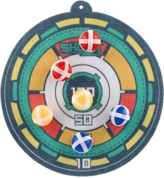 Miękkie, kolorowe piłeczki po trafieniu łatwo przyczepiają się do tarczy – świetne do bezpiecznej zabawy bez ryzyka urazu.