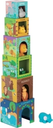 Ten zestaw 6 klocków oferuje każdemu dziecku możliwość odkrycia egzotycznych zwierząt z dalekich krain. Dzięki ich składalności i wybranemu materiałowi, zwierzątka stają się idealnymi towarzyszami w podróży i podczas kąpieli (uwaga, karton nie może mieć kontaktu z wodą!).