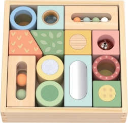 Odkryj magię tych sensorycznych klocków zaprojektowanych tak, aby rozwijać dziecięcą ciekawość i wyobraźnię. Każdy klocek jest wykonany z wysokiej jakości drewna z certyfikatem FSC® zapewniającym ekologiczną odpowiedzialność produktu. Dzięki różnorodności materiałów i tekstur dzieci uczą się rozpoznawać i odróżniać więcej elementów w ich otoczeniu.