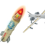 Rakieta i samolot/dron są wyposażone w atrakcyjne światła i dźwięki, które zwiększają intensywność i realizm zabawy. Idealne do dynamicznych misji i historii.