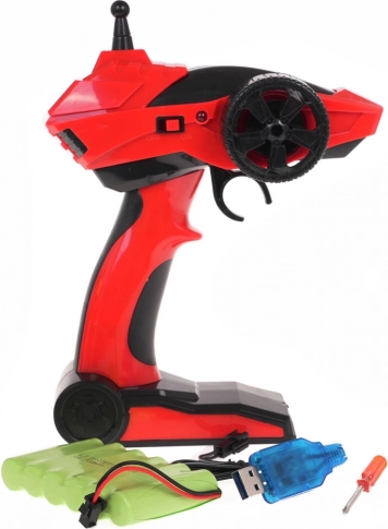 Ergonomiczny nadajnik 2,4 GHz, akumulator 700 mAh 7,2 V oraz ładowarka USB w zestawie – wystarczy włożyć 2× AA do pilota i ruszać.