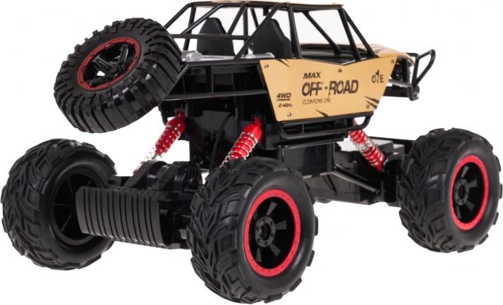Auto wyposażono w niezawodne sterowanie na częstotliwości 2,4 GHz, więc nie zakłóca się z innymi modelami. Napęd 4x4, regulacja skrętu oraz płynny ruch do przodu/tyłu i w prawo/lewo czynią z niego świetnego partnera do wspinaczki po kamieniach i przeszkodach.