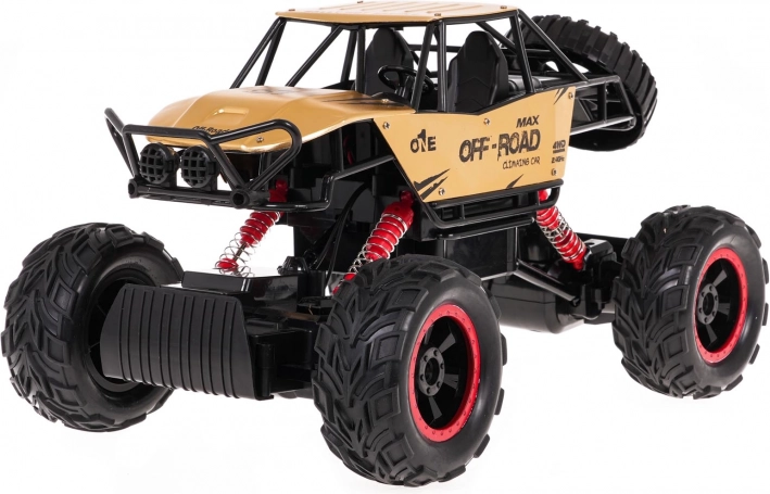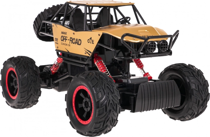 Crawler One Max to solidny RC crawler przeznaczony dla dzieci od 6 lat oraz dorosłych lubiących zabawę. Jego metalowa karoseria i wytrzymała konstrukcja z rozwiązaniem antykolizyjnym wytrzymają ostre terenowe wypady, a wysokie sprężynowe zawieszenie i duże koła zapewnią pewny przejazd przez piasek, żwir i trawiaste odcinki.