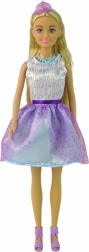 Odkryj urok lalki Anlily w bajkowym stylu księżniczki. Jej gęste, delikatnie falowane blond włosy aż zachęcają do tworzenia nowych fryzur. Suknię z białym gorsetem i fioletowo‑niebieską spódnicą uzupełniają błyszcząca korona, naszyjnik oraz wysokie buciki – wszystko perfekcyjnie skomponowane dla królewskiego wyglądu.