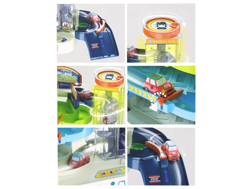 Każdy poziom parkingu oferuje cztery miejsca postojowe, na których dzieci mogą z łatwością zaparkować dołączone samochodziki. Unikalnym elementem jest winda, która umożliwia przemieszczanie aut między poziomami. Po wyjechaniu z windy samochodziki automatycznie zjeżdżają w dół, co tworzy bardziej dynamiczną i ekscytującą zabawę.