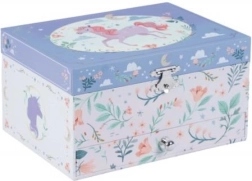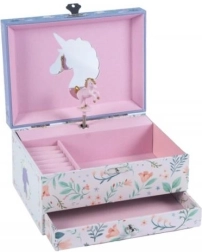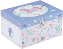 Szkatułka z pozytywką to idealny prezent dla dzieci, które lubią magiczne i oryginalne dodatki. Po otwarciu pudełka rozbrzmiewa melodia, a wraz z nią obraca się piękny jednorożec.