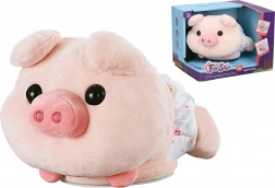 Ta interaktywna świnka dostarcza podwójnej porcji zabawy. Z jej efektami świetlnymi i dźwiękowymi zapewni dzieciom niezapomniane chwile zabawy. Wystarczy nacisnąć przycisk na lewym boku, by świnka ruszyła z melodią, a przy kolejnym naciśnięciu powtórzy to, co mówisz, poruszając się! Świnkę można łatwo włączyć i wyłączyć za pomocą przełącznika na spodzie.