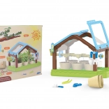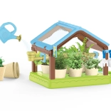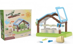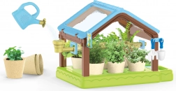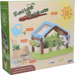 - szklarnia, 6 doniczek, 4x ziemia, nasiona, 6 etykiet, konewka, penseta, nożyczki, szpadelek, grabki, sadzarka