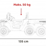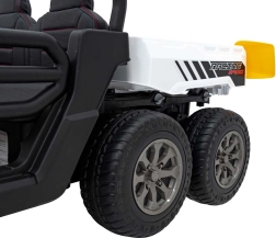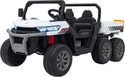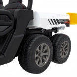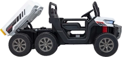 Odkryj solidny pojazd dziecięcy Farmer Truck Speed 900 w białym kolorze – sześcio-kołowego terenowego towarzysza z mocnymi silnikami 4×45 W, akumulatorem 12 V/10 Ah, kołami EVA i światłami LED. Oferuje płynny start, dwa biegi przód/tył, zdalne sterowanie 2,4 GHz z funkcją STOP, luksusowe siedzenie z eko-skóry oraz multimedialny panel MP3/USB/AUX/Bluetooth. Tylna wywrotka z elektrycznym kiprem i otwieraną burtą wynosi zabawę na nowy poziom.