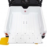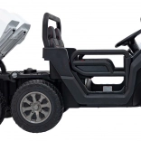 Tylna przestrzeń ładunkowa z elektrycznym kiprem i otwieraną burtą pozwala wozić zabawki i materiały – realistyczna frajda jak w prawdziwym pojeździe użytkowym.
