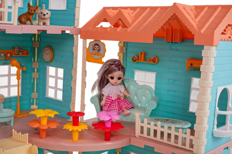 W zestawie znajdziesz pełne wyposażenie, w tym 3 lalki z długimi włosami idealnymi do czesania, meble i akcesoria zewnętrzne, takie jak huśtawka, parasol czy nawet stół do ping-ponga. Domek wykonany jest z wysokiej jakości plastiku w żywych kolorach, które przyciągają wzrok.