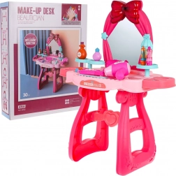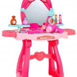 Solidne nóżki z serduszkami, duże lustro i urocze detale w różowych tonach czynią toaletkę bezpiecznym i pięknym miejscem do zabawy.