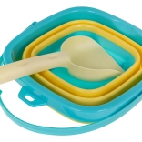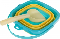 Praktyczny zestaw do piasku dla dzieci od 3 lat zawiera składane wiaderko i łopatkę – idealny do piaskownicy i na plażę. Wiaderko z plastiku i silikonu jest łatwe do przechowywania, bezpieczne i wytrzymałe, więc możesz zabrać je ze sobą wszędzie.