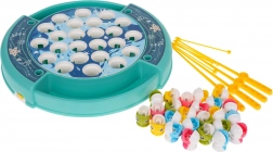 Ta kolorowa gra w łowienie rybek dostarcza dzieciom mnóstwo radości i wspiera rozwój umiejętności. Obracająca się podstawa z barwnymi rybkami i czterema magnetycznymi wędkami tworzy emocjonujące wyzwanie, podczas którego dzieci ćwiczą koncentrację i precyzję. Nie brakuje też wesoło brzmiących melodii, które w razie potrzeby można wyłączyć.