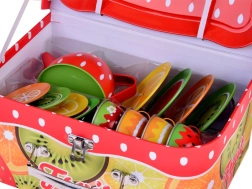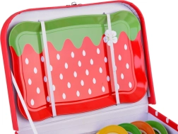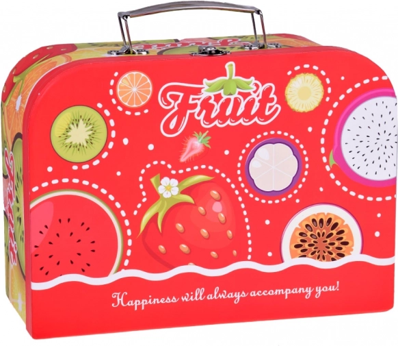 Cały zestaw mieści się w solidnym kuferku z owocowym motywem. Dzieci łatwo posprzątają swój zestaw i zabiorą serwis herbaciany wszędzie ze sobą.