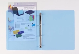 Segregator pierścieniowy Opaline w formacie A4 jest wyposażony w przezroczystą przednią kieszeń, do której można łatwo włożyć własne ulotki lub etykiety dla efektywnej prezentacji.