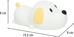 Silikonowa nocna lampka w kształcie pieska jest idealnym dodatkiem do pokoju dziecięcego, który swoim delikatnym światłem zapewnia poczucie bezpieczeństwa. Dzięki miękkiemu silikonowi lampa jest bezpieczna dla dzieci, które mogą ją dotykać, ściskać lub przytulać. Lampa oferuje dwa tryby światła: ciepły biały i zimny biały, co umożliwia dostosowanie oświetlenia do potrzeb dziecka. Jasność można łatwo regulować poprzez przytrzymanie noska pieska.