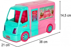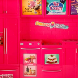 Ten niesamowity zestaw do zabawy łączy magię mobilnego food trucka serwującego naturalne lody i przestronnej przyczepy, która oferuje mnóstwo miejsca do zabawy i relaksu. Dzieci mogą łatwo przejść z roli kreatywnego lodziarza do roli przewodnika podróżującego kamperem, co zapewnia wielofunkcyjną zabawę i nieograniczoną rozrywkę.
