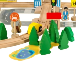Przeżyj chwile pełne kreatywności z drewnianą kolejką. Zestaw zawiera 50 elementów, które są gładko oszlifowane, dzięki czemu gwarantują bezpieczeństwo i trwałość podczas zabawy. Zawiera pociąg z wagonem, auta, budynki, figurki i dekoracje miasta, które można ułożyć według uznania i stworzyć własne małe miasto.