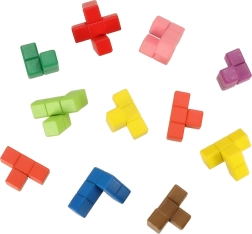 Edukacyjna drewniana układanka jest zaprojektowana tak, aby wspierać kreatywną zabawę oraz rozwijać logiczne myślenie i zręczność. Zawiera 11 klocków różnych kształtów i kolorów, które dzieci muszą precyzyjnie dopasować do podstawki, co stymuluje ich koncentrację i koordynację ręka-oko. Zawiera książeczkę z 74 zadaniami, która oferuje różne wyzwania, pozwalając dzieciom na ciągłe doskonalenie umiejętności. Z trzema poziomami trudności ta układanka dostosowuje się do wieku i umiejętności dziecka, zapewniając ciągłe wyzwania na każdym etapie rozwoju.