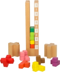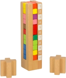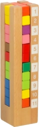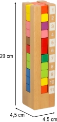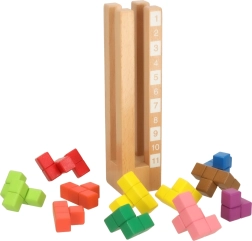 Klocki są wykonane z trwałego drewna i mają gładkie krawędzie oraz żywe kolory, co zapewnia bezpieczną zabawę. Ta zabawka to doskonały wybór, łączący naukę z zabawą, wspierający rozwój dziecka poprzez angażujące zadania.