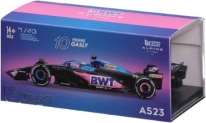 Ikoniczne barwy zespołu: niebieski, różowy i czarny, wierne logotypy sponsorów BWT, ALPINE i Castrol oraz aerodynamiczne kształty – ten model oddaje realistyczny wygląd prawdziwego bolidu Alpine A523 (sezon 2023). W skali 1:43 doskonale prezentuje się w każdej gablocie.